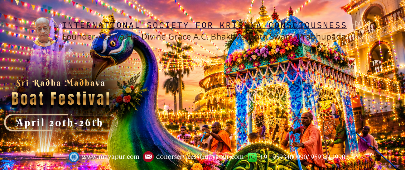 On the auspicious occasion of Akshaya Tritiya, a day known for its ever-increasing spiritual blessings, the sacred Chandan Yatra begins. This marks the start of a deeply refreshing and joyful season in Mayapur, where the Lordships are lovingly adorned with cooling sandalwood paste to bring comfort during the summer months. Over the days that follow, beautiful and creative veśas unfold, each revealing a unique pastime and mood of the Lord. The atmosphere becomes especially magical, soft, and filled with devotion, as Śrī Śrī Rādhā Mādhava are worshipped with increasing sweetness. This festival season gradually leads the heart toward the divine appearance of Lord Narasimha, followed by the grand celebrations of Ratha Yatra, making the entire summer in Māyāpur a continuous flow of spiritual joy and remembrance.