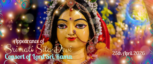 There is a beautiful pastime connected to this day. When Lord Rāma was in exile, He came to Māyāpur, specifically to the island of Modadrumadvīpa. Seeing Him smiling, Sītā Devī lovingly inquired about the reason. Lord Rāma explained that in that age He had sent Her to the forest, but in the age of Kali He Himself would go to the forest and accept sannyāsa. He further revealed that when She would be in the forest, He would worship a golden deity of Her, and in Kali yuga, when She would be separated, She would worship Him in a golden form. Hearing this, Sītā Devī was not pleased, as both situations carried the pain of separation from the Lord. This exchange reveals the deep and intimate nature of divine love, where even separation becomes an expression of profound devotion.